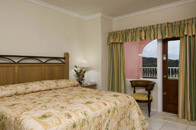 Frigate Room: An elegantly appointed room that can connect with the Frigate Suite, featuring two queen beds, spacious bath with double shower and tub, picture window and patio overlooking the pool, beach and sea. |