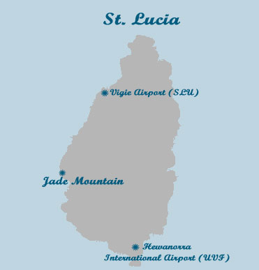 | Jade Mountain On the island of St. Lucia Click map for close-up of St. Lucia |